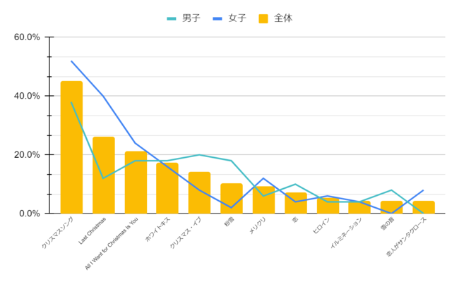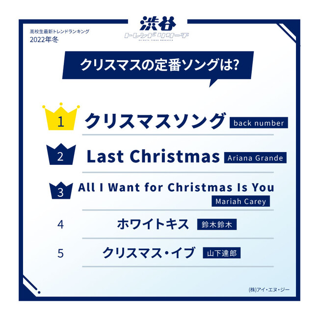 まずは高校生が選ぶ、「クリスマスの定番ソング」についての調査結果です。