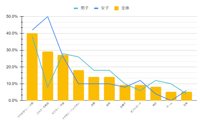 続いて、「クリスマスにプレゼントで貰いたいもの」についての調査結果です。