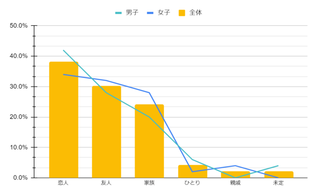 次に、「クリスマスに過ごす相手」についての調査結果です。