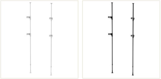 (左:<室内つっぱり竿受け 2段> 右:<室内つっぱり物干し 3段>)