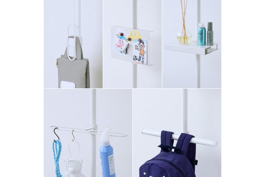 tateccoの第2弾では、リビングや子ども部屋など大きい物が散らかりやすい空間で使える「たてっこポール」と、5種類の専用アクセサリーを発売いたします。