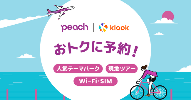 旅行・体験予約プラットフォームのKlookは、4月18日、Peach Aviation株式会社(代表取締役 CEO:大橋 一成)と提携し、PeachのウェブサイトからKlookのアクティビティ商品を予約できる「Peach TICKETS(ピーチ・チケッツ)」のサービスを開始します。また提携を記念し、4月18日から6月30日まで、Klookの韓国・台湾・沖縄の現地ツアー・観光商品や、国内外のテーマパークチケットがお得になる共同キャンペーンを実施します。