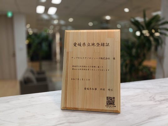 アップセルテクノロジィーズ株式会社(本社:東京都豊島区、代表取締役会長CEO:高橋 良太、以下「当社」)は、2025年1月15日「立地登録証授与式」にて愛媛県立地登録証交付企業に認定されました。