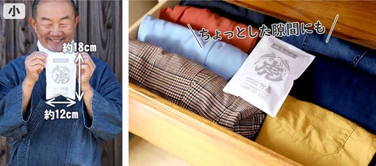 また、竹炭の強力なニオイ吸着力は靴箱や衣装ケースなどの消臭にも効果的であり、湿気を吸着してくれるので結露の防止にもおすすめです。