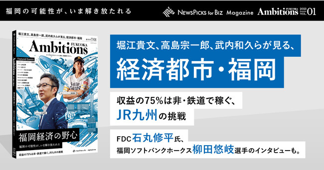 株式会社アルファドライブ(代表取締役社長 兼 CEO 麻生要一)の子会社の株式会社NewsPicks for Business(代表取締役 麻生要一、以下、NewsPicks for Business)は2023年11月14日(火)、福岡経済を掘り下げるビジネスマガジン『Ambitions FUKUOKA』を発売します。