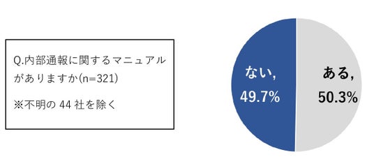 今回の調査においては、49.7%の企業において内部通報に関するマニュアルがないとの回答が得られました。