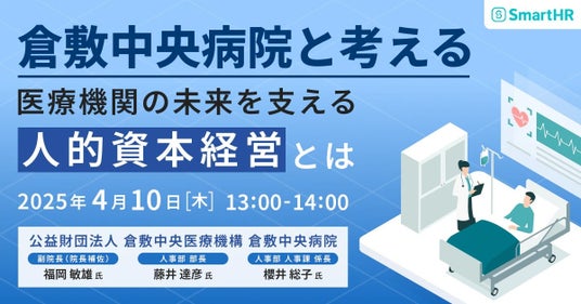 株式会社リグリットパートナーズ(本社:東京都千代田区、代表取締役社長:山木 智史、以下「当社」)は、公益財団法人 大原記念倉敷中央医療機構 倉敷中央病院(所在地:岡山県倉敷市、院長:寺井 章人、以下「倉敷中央病院」)、および株式会社SmartHR(本社:東京都港区、代表取締役CEO:芹澤 雅人)と共同で、オンラインセミナーを開催いたします。