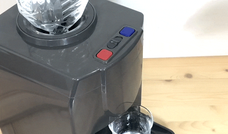 ペットボトルをセット後、冷水と温水が適正温度になると本体正面の温度ランプが切り替わります。