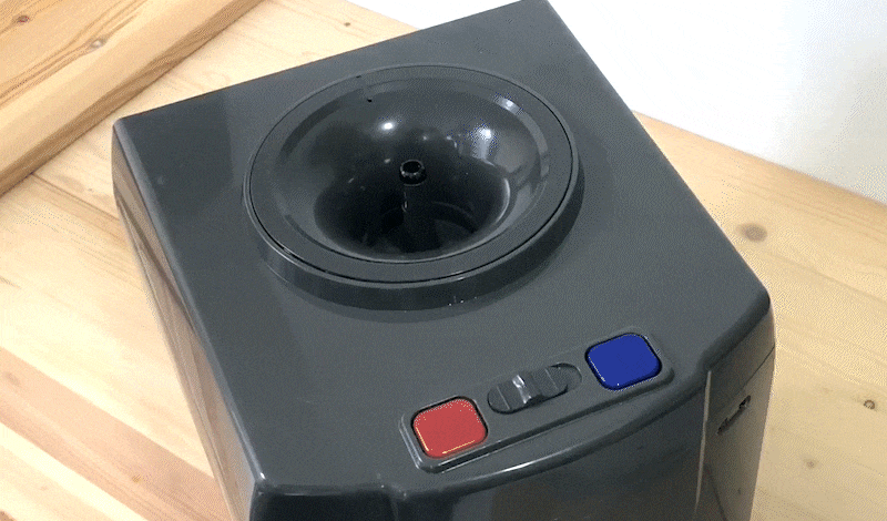 従来のペットボトル式ウォーターサーバーと比べて、弊社ウォーターサーバーは氷いらずで冷水温度が約9℃と低く、ボタン1つでいつでもキンキンに冷えた水を使用できます。