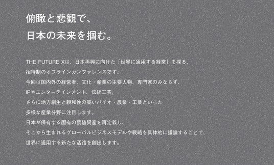 2月7日にベルサール渋谷ファーストにて開催する、紹介制の経営者カンファレンス「THE FUTURE X 2025」のコンセプト「俯瞰と悲観で、日本の未来を掴む」を発表しました。