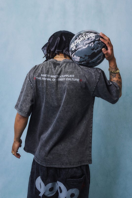両者のアイコンのロゴを基調にしたグラフィックを掛け合わせたデザインを中心に、Tシャツやセットアップ、靴下の合計3型を販売いたします。「9090」の持つヴィンテージ感やポップさと、「SUPPLIER」の持つアンダーグラウンドな雰囲気を掛け合わせたストリートブランド同士ならではのコレクションとなりました。