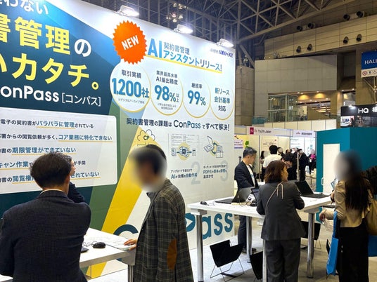 さらに今回は、契約書の活用領域を支援する次世代主力機能として、「質問を投げかけるだけで契約書の内容を即座に検索・分析し、必要なアウトプットを出力する」AIアシスタント機能と、「新リース会計基準」の対象契約書をワンクリックで抽出する自動抽出機能を実装。本展示のハイライトとして大きな注目を集めました。