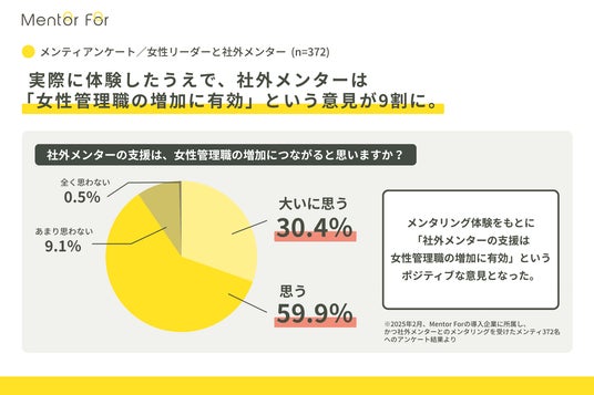 - 9割のメンティが「社外メンターが女性管理職の増加に有効」と回答。