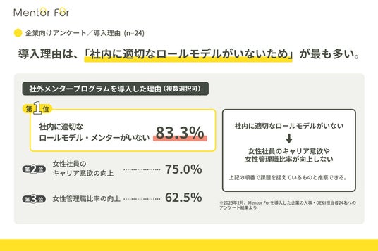 Mentor Forの導入理由として、「社内に適切なロールモデルがいないため」が最も多い意見となりました。