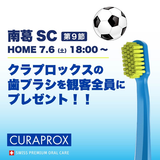 スイスのプレミアムオーラルケアブランド クラプロックスは、サッカークラブ「南葛SC」とオフィシャルクラブスポンサー契約を締結記念として、7月6日(土)の奥戸総合スポーツセンター陸上競技場(ホーム戦)で行われる東京国際大学FC戦において、観客者全員にクラプロックス製品の配布を予定しています。