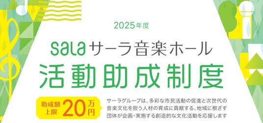 株式会社サーラコーポレーション(本社:愛知県豊橋市、代表取締役社長兼グループ代表・CEO:神野吾郎)を持株会社とし生活関連企業49社で構成するサーラグループは、サーラ音楽ホール[浜松市市民音楽ホール](浜松市浜名区新都田三丁目)における地域に根ざした文化芸術活動を支援する「サーラ音楽ホール活動助成制度」(以下「本制度」)を設立し、地域の文化団体が同ホールで行う創造的な活動への助成を行っています。