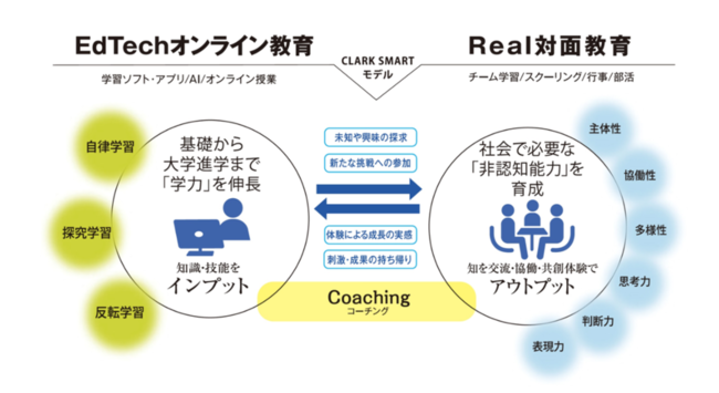 CLARK SMARTでは、場所や時間に縛られることなく、個人のペース・目標に合わせて、教員がコーチングをしながら、EdTechを活用した個別最適型教育を実践します。