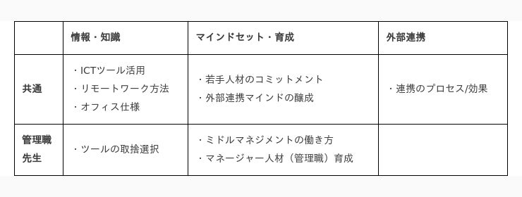研修内容:オフィス見学、ICTツールによる働き方の変容とリモートワーク