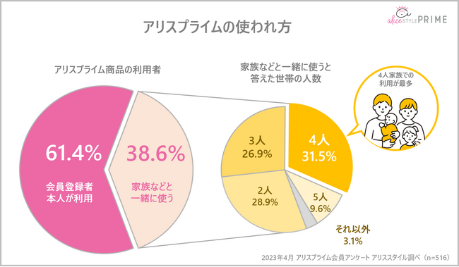 アリスプライムでレンタルした商品について、38.6%が家族などでシェアして利用