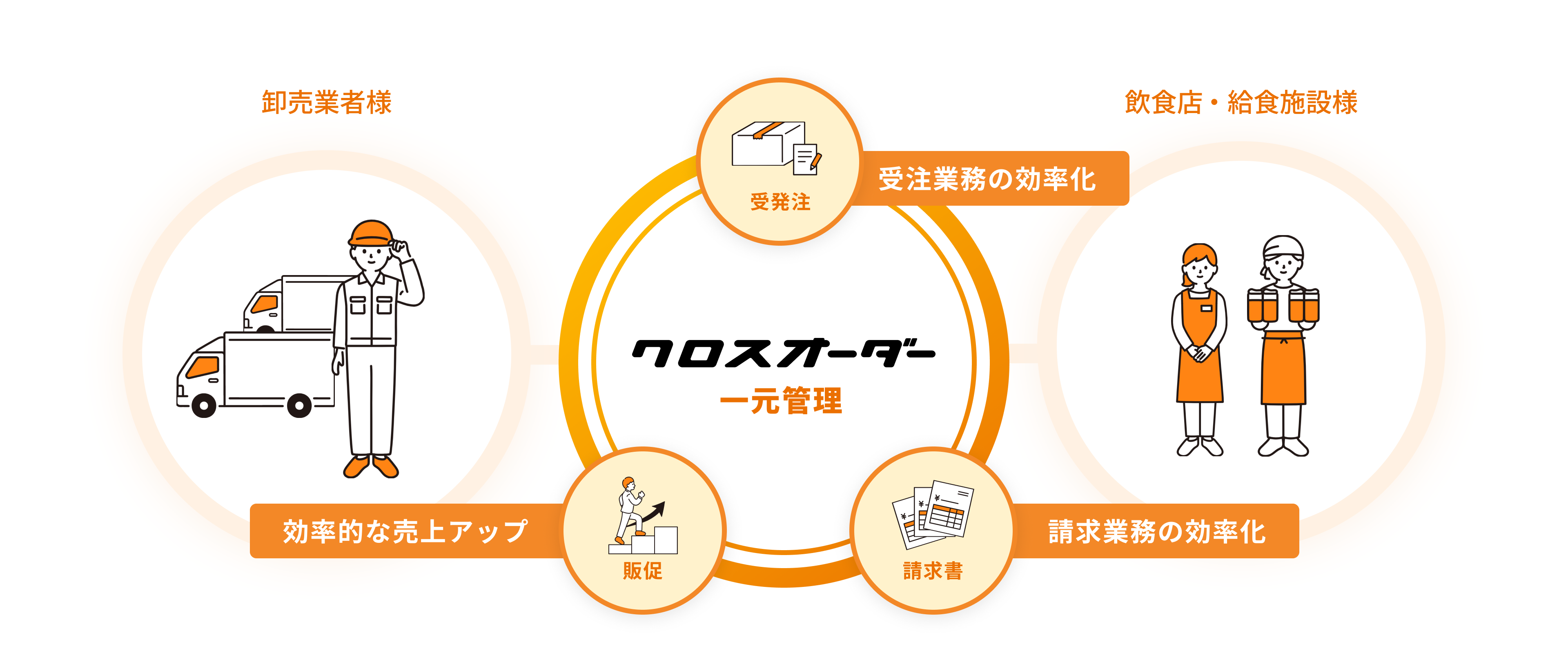 引き続き、卸売業者様・飲食店様の業務効率化、生産性向上のご支援をすると共に、外食産業の発展に貢献するサービスを展開してまいります。