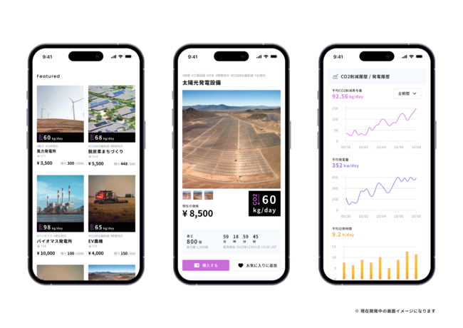 「CAPTURE X」は、CO2回収設備やメガソーラー設備、脱炭素に向けたまちづくりの取り組みなど、脱炭素社会の実現を目指す設備・取り組みのデジタルオーナーになって、脱炭素を応援できるアプリです。