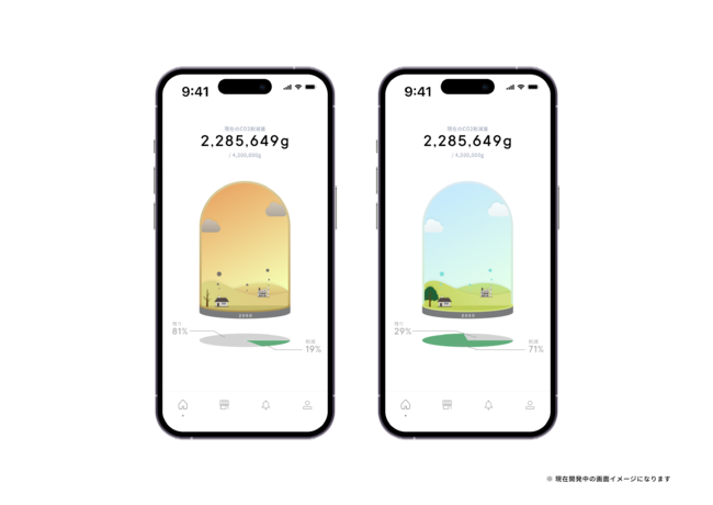 ▲アプリは2050年の地球からスタート。購入したNFTを設置してCO2を削減していき、理想の状態に近づけていくことがオーナーたちの役割です。(画面は現時点の開発中のものであり、実際の仕様とは異なる場合があります。)