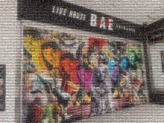 数々の手書き看板を重ねた新宿BLAZEの外観