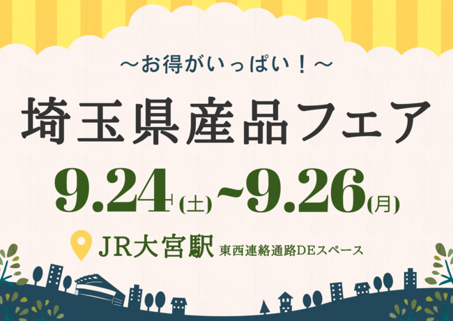 (一社)埼玉県物産観光協会(会長:松本邦義)は、JR大宮駅東西連絡通路DEスペースにおいて、物産展『お得がいっぱい!埼玉県産品フェア』を開催します。