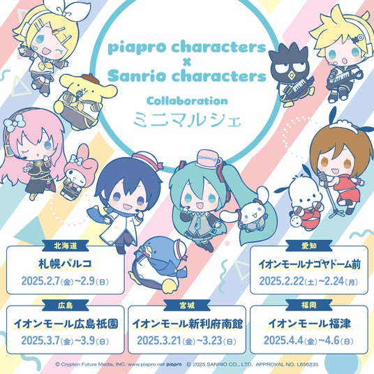キャラクターグッズの商品企画・製作・販売を行なっている株式会社BeBlock(本社:愛知県名古屋市、代表:松村祐輔)は、「初音ミク × シナモロール」、「piapro characters × Sanrio characters」のグッズ販売およびミニキャラフォトブースを設置したPOP UPショップを開催。本イベントは、2025年2月7日(金)札幌パルコより、全国5都市で順次開催します。