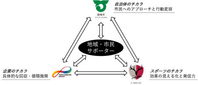 本協定は、地方自治体である鹿嶋市と,国内最多優勝回数を誇るプロサッカークラブである株式会社鹿島アントラーズ・エフ・シーと、総合包装容器メーカーである当社が連携する試みであり、それぞれの持つ知見やノウハウを生かし、資源である包装容器の回収を行うとともに、その資源を活用して再商品化を行い,地域における資源循環と持続可能な社会の形成を推進していきます。