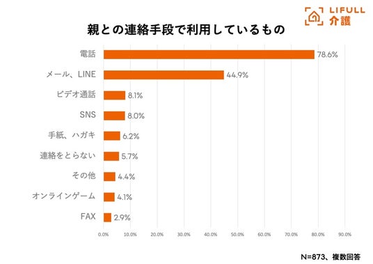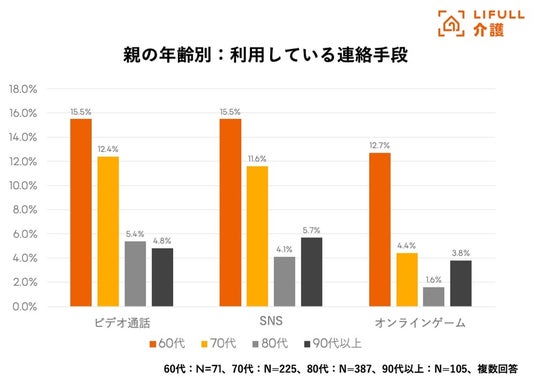 70代以下の親との連絡手段、1割が「SNS」と回答。60代は「オンラインゲーム」も1割を超える
