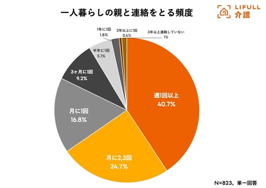 一人暮らしの親に連絡する頻度を尋ねたところ、最も多かったのは「週に1回以上」で40.7%の人が回答していました。