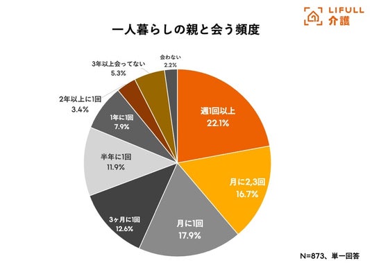 また、会いにいく頻度の最多も「週に1回以上」(22.1%)となり、月に1度以上会いに行く人は56.8%にのぼりました。一人暮らしの親を心配し、連絡頻度も訪問頻度も高くなっている様子がうかがえます。