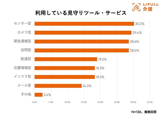 利用している人にどんなサービスを利用しているか聞いたところ、最も多かったのは「センサー型」(センサーが動きを感知して安否確認を行うサービス)でした。人気のセンサー型やカメラ型は、導入に機器の購入・レンタル、自宅のインターネット環境の整備が必要です。そうした必要な準備のハードルの高さが、利用率の低さに影響しているのかもしれません。