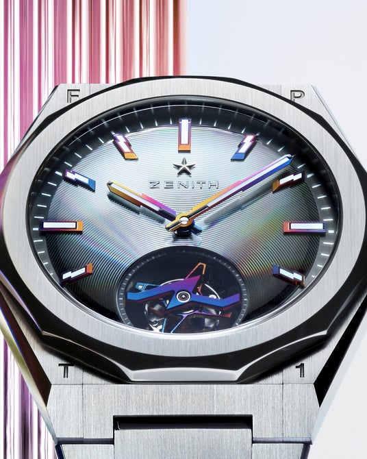 ゼニスとのクリエイティブなプロジェクトに加わった新たなチャプターについて、フェリペ・パントンは次のように述べています。「ゼニスとの最新コラボレーションを披露できることを大変うれしく思います。これまでで最も異彩を放つウォッチが完成しました。シンプリシティと洗練が融合した高級時計の傑作です。複雑でありながらミニマルなこのタイムピースは、細かなグラデーションを施したインデックスと針、「Planned Iridescence」ミラー文字盤、稲妻の形をしたユニークなトゥールビヨンなど、唯一無二のディテールを備えています」