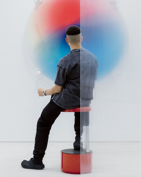 フェリペ・パントンの作品は、アナログの過去とデジタル化された未来のぶつかり合いを思わせます。そこでは、ネオンカラーのグラデーション、幾何学的なシェイプ、オプティカルなパターン、ギザギザのグリッドによって構成されるプリズムの中で、人と機械が隣り合い、グリッチを引き起こします。