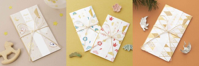 『赤ちゃんのお祝』『こどものお祝』『おとなのお祝』は、出産や誕生日などの一般的な祝いごとに加え、ハーフバースデーや2分の1成人式といった近年定着している新たな祝いごとにも対応した祝儀袋です。赤ちゃん・子ども・おとな、それぞれに訪れるお祝いの機会に合わせて、付属の表書きを充実させました。