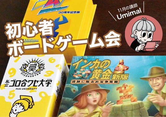 やってみたいボードゲームはあるけど、ルールブックを読んで理解するのにハードルを感じてしまう。そんな方でも安心。初心者ボードゲーム会では、ClaGlaのスタッフが講師としてゲームのルールを説明してくれます。11月の講師は広報・ウェブショップを担当しているUmimalさん。ClaGlaメンバーの似顔絵、紹介漫画はUmimalさんが手掛けています。