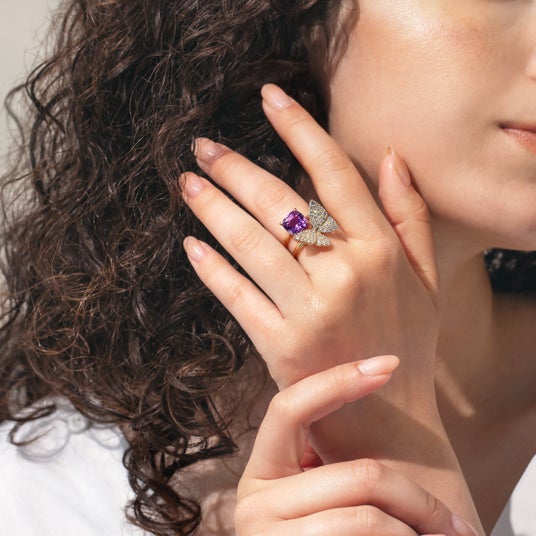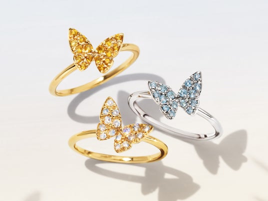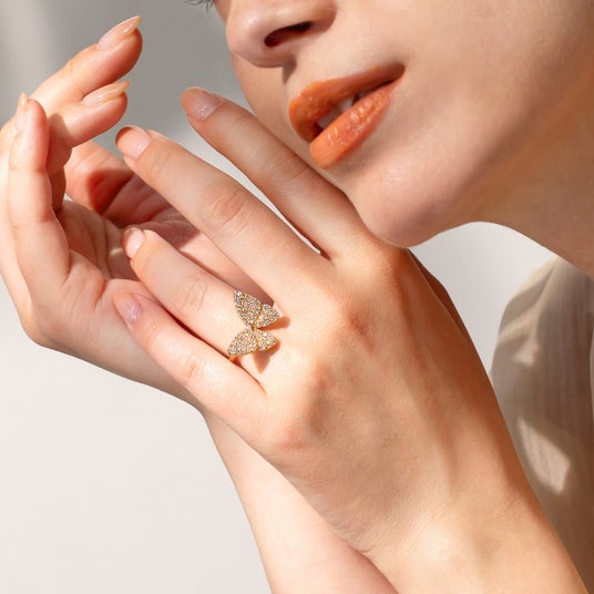 天然のカラーストーン100種類以上を取り扱うジュエリーブランド「BIZOUX(ビズー)」は、一羽の蝶が舞い降りたロマンティックな瞬間を、優雅に表現した新作パヴェ(=石畳)リング「ブーケ パピヨン」コレクションを発売しました。