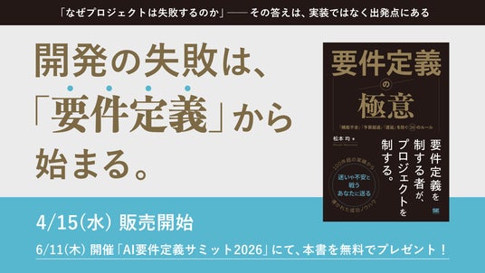 なお、6月11日に開催する「AI要件定義サミット2026」にて、翔泳社の特設ブースを設置します。ブースにお立ち寄りいただいた方には、本書を無料でプレゼントいたします。