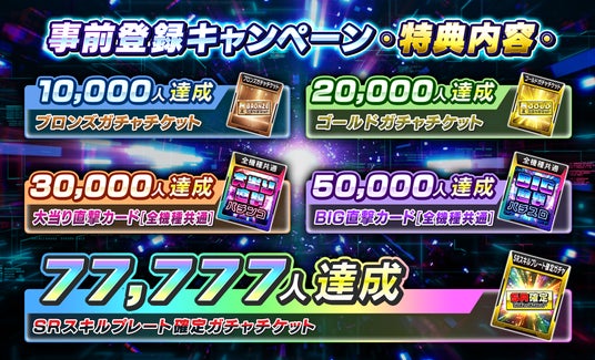 本日より開始する事前登録では、登録者数に応じてリリース時に特典を付与します。