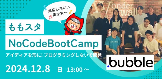 NoCodeCamp(東京都稲城市)は、岡山市の起業支援施設「ももたろう・スタートアップカフェ(通称:ももスタ)」にて、12月8日から「ももスタNoCodeBootCamp冬」を開催します。