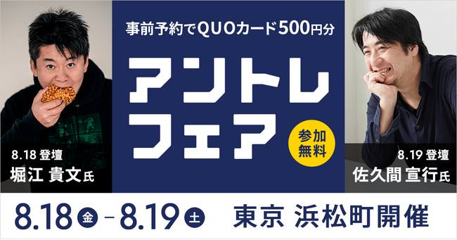 また、実業家 堀江 貴文氏・テレビプロデューサー 佐久間 宣行氏などのゲスト講演や、資金調達や会社設立、起業の相談など、起業・開業に特化した専門家にもご相談頂けるなど、コンテンツ豊富なイベントです。