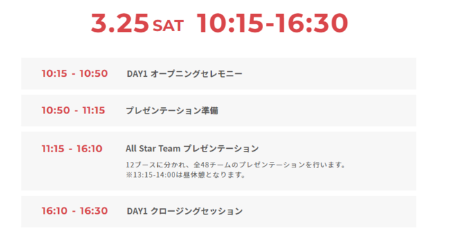 (*2) 出場プロジェクトの発表日は変更になる場合がございます