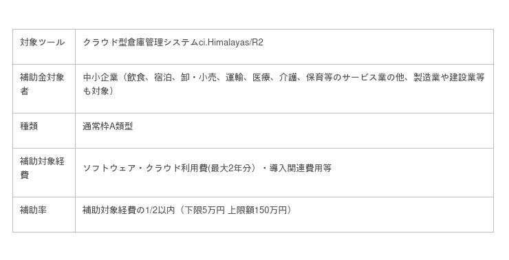 これにより、中小企業・小規模事業者様は、「ci.Himalayas/R2」の導入費用の2分の1(最大150万円未満)について補助を申請することが可能になります。