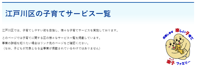 「江戸川区の子育てサービス一覧」-江戸川区ホームページ