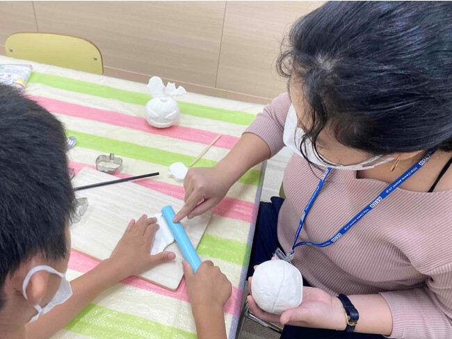 キッズ向けの特別レッスンでは、子どもたちが楽しい、好きと思ってもらえるよう、「父の日のカードづくり」「ハロウィンのオブジェ作成」など英語で工作をしました。他にも、いくつかの教室に単語クイズを設置し、スペリングを獲得していくトレジャーハンティングゲームを行うなど、英語に楽しく触れられ、学べる機会を作っています。