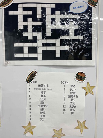 イーオン西葛西校では「生徒様の上達と“今日イーオンにきて良かった・学びある時間だった”と思っていただける環境づくりとレッスンの提供」を目標としています。その為、校内の掲示物や特別レッスンでは、「楽しんで学ぶ」をコンセプトに様々な企画をしています。例えば、英語のクロスワードパズルは特に好評で、掲示物を携帯で写真を撮って家に持ち帰り、家族みんなで問題を解いてくださるということもありました。
