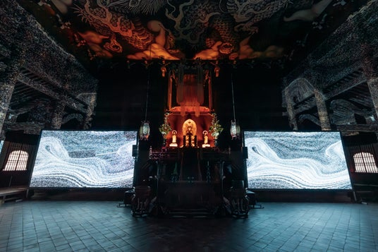 双龍図 - 脇田 玲 龍雨図 最新技術を使ったプロジェクションアート 建仁寺の象徴である小泉淳作「双龍図」に、現代アーティストであり、慶應大学の教授でもある脇田玲が、最新の流体シミュレーション技術を使ってエネルギーの流れを可視化するオーディオビジュアル・インスタレーションの共演。仏法の守護神である龍のエネルギーを感じる体験をお楽しみいただけます。