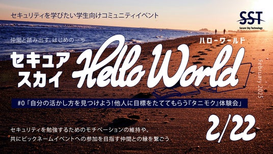 安全なWebサイトを実現するために脆弱性診断とクラウド型WAFを提供する株式会社セキュアスカイ・テクノロジー(本社:東京都千代田区、代表取締役:大木 元 以下、セキュアスカイ)は、高校・高専・大学・専門学校に在籍する学生を対象としたコミュニティイベント「セキュアスカイ Hello World」を2025年2月より開始いたします。